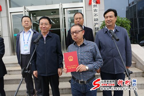 本報(bào)訊 9月27日上午,我市舉行不動(dòng)產(chǎn)登記局、不動(dòng)產(chǎn)登記中心揭牌暨市本級(jí)首本不動(dòng)產(chǎn)權(quán)證書頒發(fā)儀式。省國土廳副廳長武耀文、副市長武憲堂參加儀式。