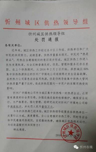 忻州城區(qū)供熱領導組處罰通報