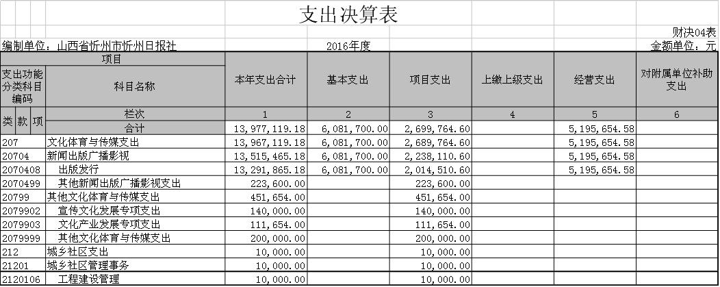 忻州日報社2016年度部門決算