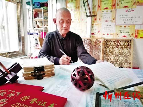 李德賢,出生于1942年,現(xiàn)年76歲,定襄縣季莊村人。李德賢的父親是當(dāng)?shù)啬咀鞯?9代掌門人,按照當(dāng)時的行規(guī),每一屆掌門人選下一任掌門人時要嚴(yán)格遵循“傳長不傳子”的古訓(xùn),也就是說在任的掌門人必須是品德高尚、技藝超群的德藝雙馨之人,選任下一代接班人時不能懷有私心,不能把自己的兒女作為接班人,接班人必須是熱愛木作、誠信聰明、記性好、有悟性、有開拓能力、對木作有建樹、嚴(yán)守一日為師終生為父至善品行的人。同時,按照行規(guī),選接班人要進(jìn)行嚴(yán)格的考試,師傅看中有悟性的弟子時,會交給他一個平時秘不示人的“六技八體”讓弟子做?!傲及梭w”是小木作,但它是體現(xiàn)大木作組合的經(jīng)典和規(guī)范大全。等弟子過年拜師時要交給師傅一個做好的“六技八體”給師傅看,然后接下來的五年中,弟子要根據(jù)師傅給的“六技八體”自己去悟,另外設(shè)計如何結(jié)構(gòu)、怎么組合、怎樣開啟的方法,逐年加一個,5年共15個絕不重復(fù),每年拜年時交師傅。師傅根據(jù)這15個變體“六技八體”的工藝水平和弟子的德行,經(jīng)考察,合格者定為掌門,最后將手藝絕活傳給他。人名由師傅刻于始祖像背部,流芳千古。在跪拜始祖、師傅和立誓言后,師傅把資料及始祖像傳給接班人供奉,代代相傳已有1800余年。李師傅說自己前面的49任掌門人的姓沒有一個相同的,就是源于“傳長不傳子”的古訓(xùn)。掌門恩師各有刻畫資料,別出心裁,令人稱奇。正是這種有別于一般“父傳子”的開放式傳承制度,保證了古老的技藝能夠得以傳承和發(fā)揚(yáng)。