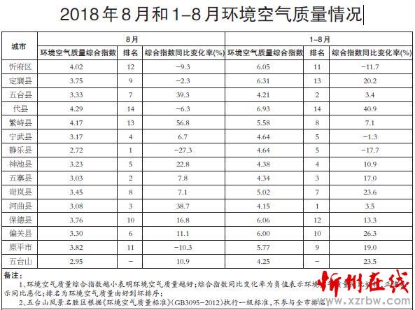 忻州市1-7月地表水環(huán)境質(zhì)量狀況通報(bào)