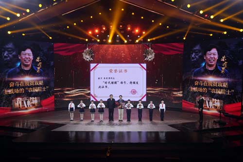 朱有勇在“時(shí)代楷?!卑l(fā)布儀式上領(lǐng)取獎(jiǎng)?wù)潞妥C書(shū)(11月29日攝)。 新華社記者 金良快 攝