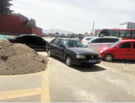 本報(bào)訊 6月2日,記者在北城門樓西北角看到,車輛停放混亂無序,有的甚至停放在通行的馬路上。而馬路中央堆放著一堆施工用沙,整個(gè)環(huán)境看上去不和諧。