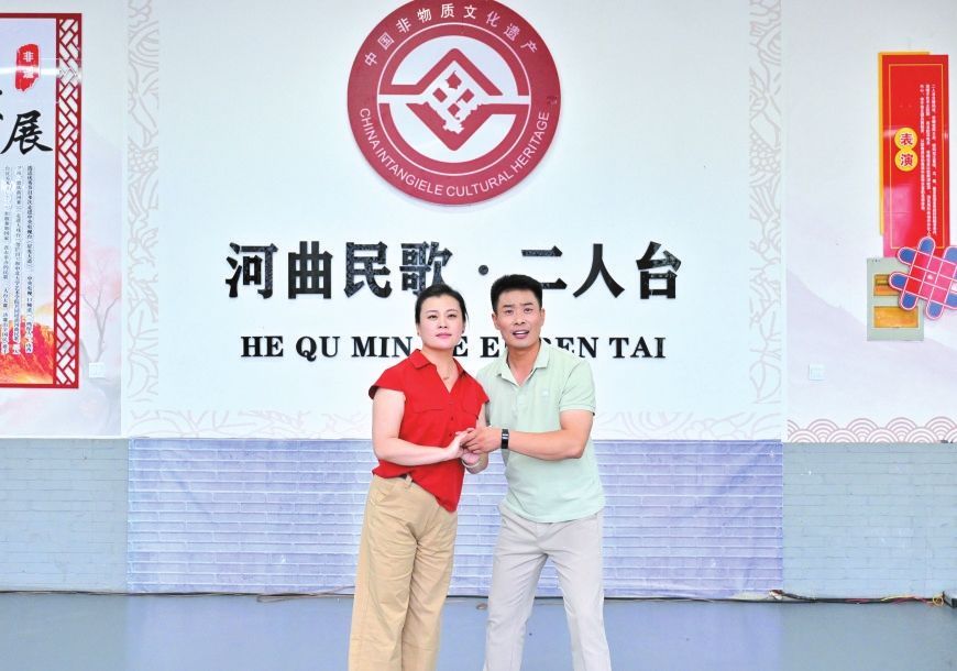 走進河曲縣白樸公園,一段清亮婉轉(zhuǎn)的唱腔便隨風入耳——河曲縣民歌二人臺藝術(shù)團演員鄔光正和同事們?nèi)橥度耄蚰ゴ笮头沁z音樂劇《大河長歌》。他額角滲著細密的汗珠,當唱到“好兒女今日唱長歌,勝過了前輩了不得”時,突然停了下來,對搭檔說:“再來一遍,剛才那口氣沒頂滿?!边@份對細節(jié)的較真,藏著他對二人臺藝術(shù)最樸素也最深厚的敬畏。