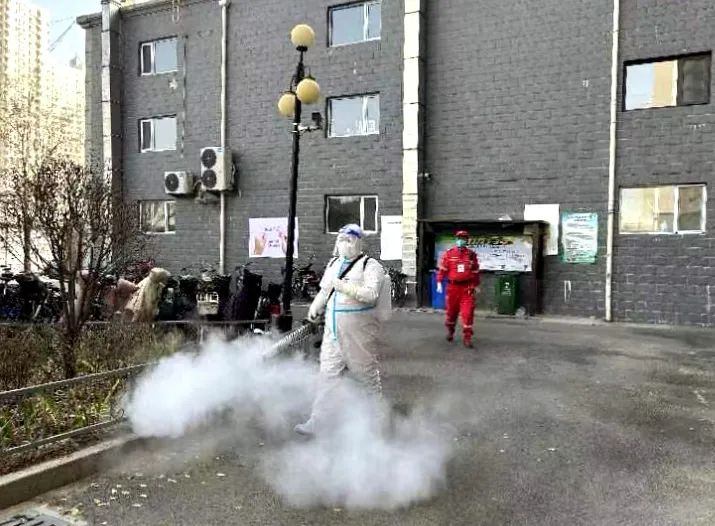 在消殺現(xiàn)場(chǎng),志愿者們嚴(yán)格按照上級(jí)疫情防控的要求,分工明確,配合默契,穿上厚實(shí)密封的防護(hù)服,戴上N95口罩、手套和防護(hù)面罩,背著六七十斤的消殺噴霧器,第一時(shí)間穿梭在層層高樓、平房院落等生活區(qū)公共區(qū)域進(jìn)行消殺,確保每個(gè)角落、每個(gè)區(qū)域不留死角、不留盲區(qū)。