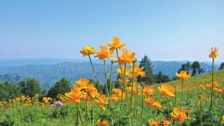 毛茛科金蓮花屬多年生草本植物,有“旱地蓮”“金芙蓉”之稱。不僅具有極高觀賞價(jià)值,還可入藥。每年盛夏,駝梁等地的金蓮花連片綻放,是五臺(tái)山標(biāo)志性生態(tài)景觀。
