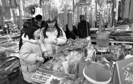 “今年蛇年,對聯(lián)和掛飾肯定以蛇元素為主,品類更加豐富,背膠和磁吸設計,掛貼更為方便?!痹谔炒筚u場,邢先生售賣春聯(lián)和窗花、燈籠等各類春節(jié)掛飾20多年了,一副副大紅的春聯(lián)掛滿了兩面墻壁,各類福字和掛飾鋪滿了整個攤位,顧客們正在選購自己喜歡的春聯(lián)和掛飾。他說,今年的春聯(lián)和春節(jié)掛飾有大幾百種,豐富多樣。臘八過后,來購買對聯(lián)和過年掛飾的人就開始多了起來,預計年前一周左右會達到高峰。