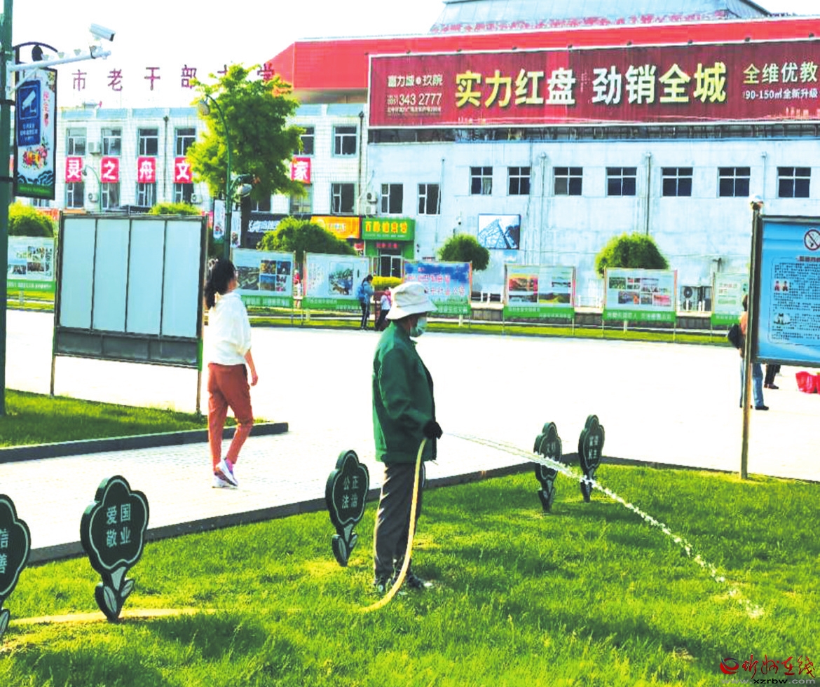 近日,市園林服務(wù)中心工作人員對我市城區(qū)體育廣場的綠化帶進(jìn)行澆水。近期,該中心加強(qiáng)對城區(qū)廣場綠地樹木的修剪、澆水、維護(hù),確保綠化苗木健康生長,助力綠色忻州的建設(shè)。 (實習(xí)生 許寧寧 攝)