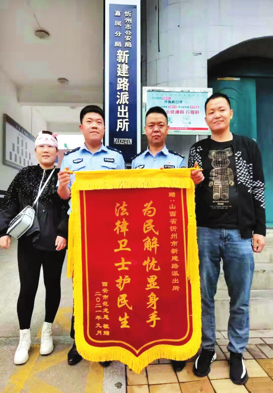 近日,一對西安夫婦將一面錦旗送到了忻州市公安局直屬分局新建路派出所,紅絨絨的錦旗上繡著14個(gè)金黃大字:“為民解憂顯身手,法律衛(wèi)士護(hù)民生?!?/p>
