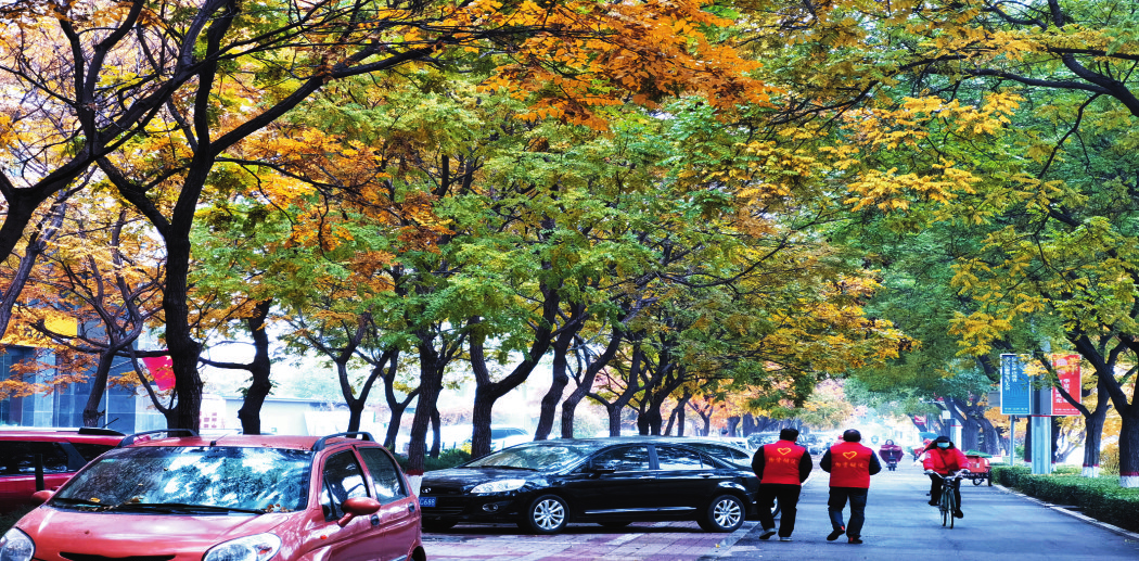深秋時(shí)節(jié),層林盡染。漫步街頭,色彩斑斕,盡收眼底,讓人心曠神怡。