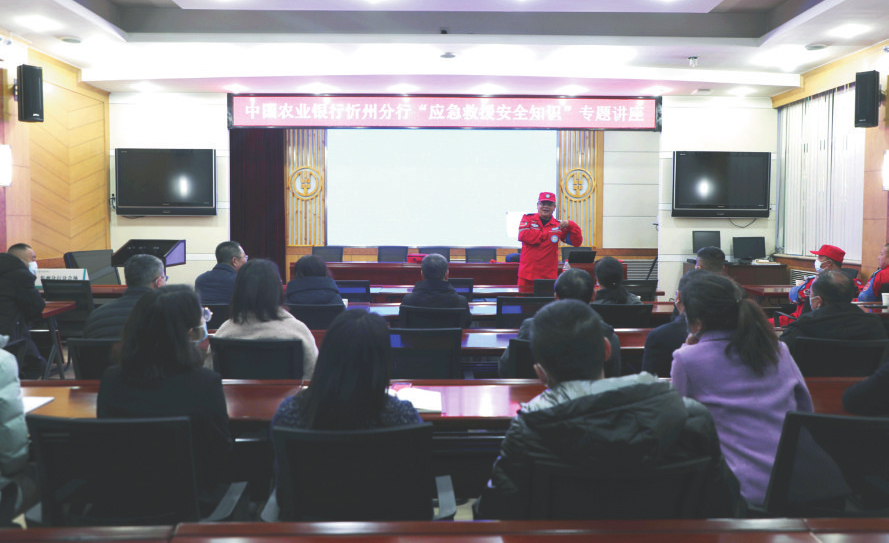 為進一步牢固樹立“以人為本,關(guān)愛生命”的思想,堅持“安全第一、預(yù)防為主、警鐘長鳴、常抓不懈”的安全工作方針,增強員工的安全防范意識,提高整體應(yīng)急救援處置能力和安全應(yīng)變能力,近日,農(nóng)行忻州分行組織開展了應(yīng)急救援安全知識講座。(喬 敏 攝)
