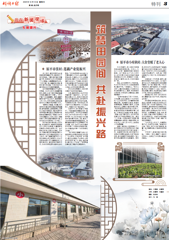 “夏賞荷,秋摘蓮,冬收藕,我們將依托交通優(yōu)勢規(guī)劃建設(shè)觀賞蓮藕園、垂釣魚稻園,讓游客留得住、玩得好,打造鄉(xiāng)村新經(jīng)濟。”隨行的原平市吉祥街道辦事處副主任賈奕翔興致勃勃地談著新規(guī)劃,“再建設(shè)1000平方米的藕粉加工車間,走加工增值的路子;同時拓建沿滹旅游大道,讓張村成為鄉(xiāng)村游的熱門‘打卡地’。”