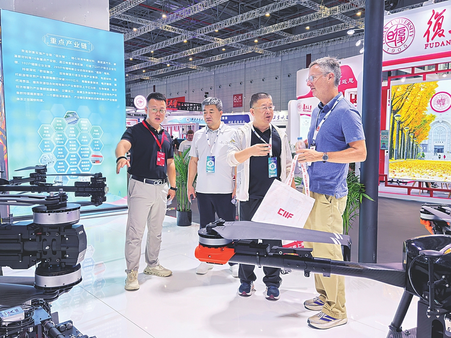 在工博會(huì)山西展區(qū),客商深入了解我省生產(chǎn)的工業(yè)無(wú)人機(jī)。本報(bào)記者郝薇攝
