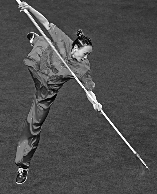 山西隊選手高曉彬在男子長拳刀術棍術全能比賽中。