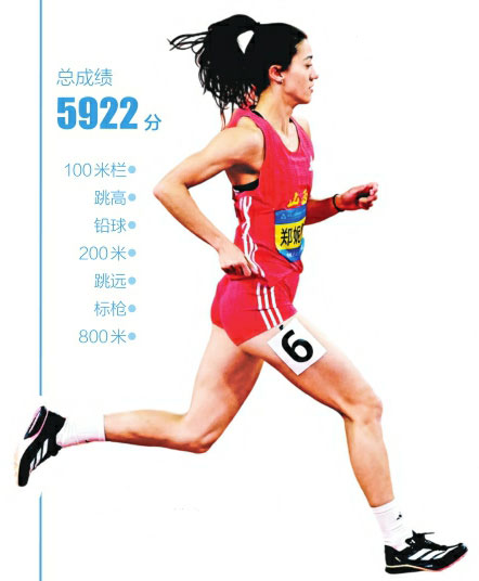 次日較量更為激烈。鄭妮娜力在跳遠(yuǎn)比賽中跳出6.08米,排名該項(xiàng)目第二;標(biāo)槍賽場雖遭遇挑戰(zhàn),但她仍以43.27米的成績拿下730分。在最后的800米決勝戰(zhàn)中,她頂住體能極限壓力,以2分19秒52的成績沖線,最終以5922分的總成績鎖定冠軍。