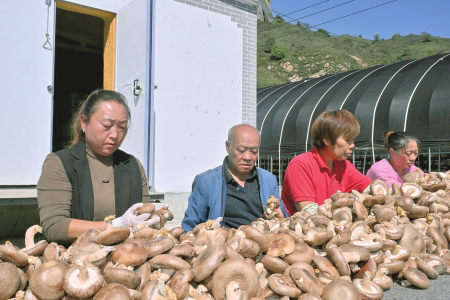 五臺縣石咀鎮(zhèn)后坪村香菇大棚給村民帶來好光景。