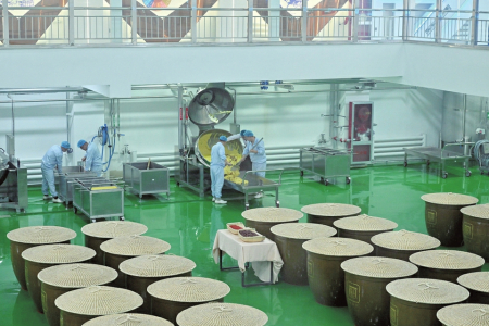 山西雁門王酒業(yè)有限公司10萬KL高端有機黃酒產(chǎn)業(yè)園工人忙碌生產(chǎn)。