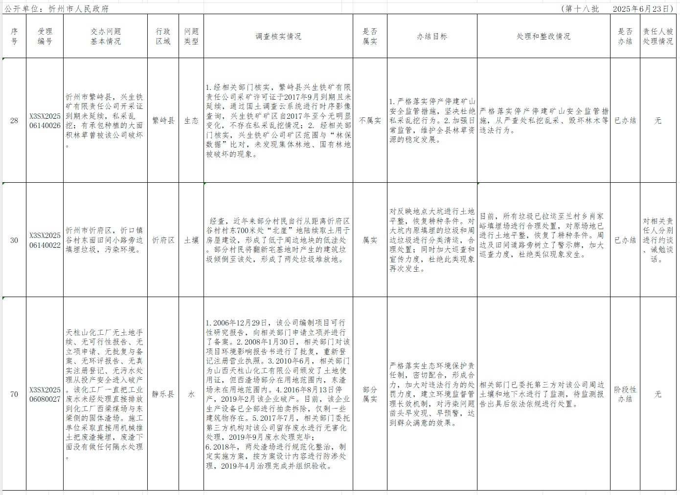 中央生態(tài)環(huán)境保護(hù)督察組群眾信訪舉報(bào)轉(zhuǎn)辦和邊督邊改公開情況一覽表(第十八批)
