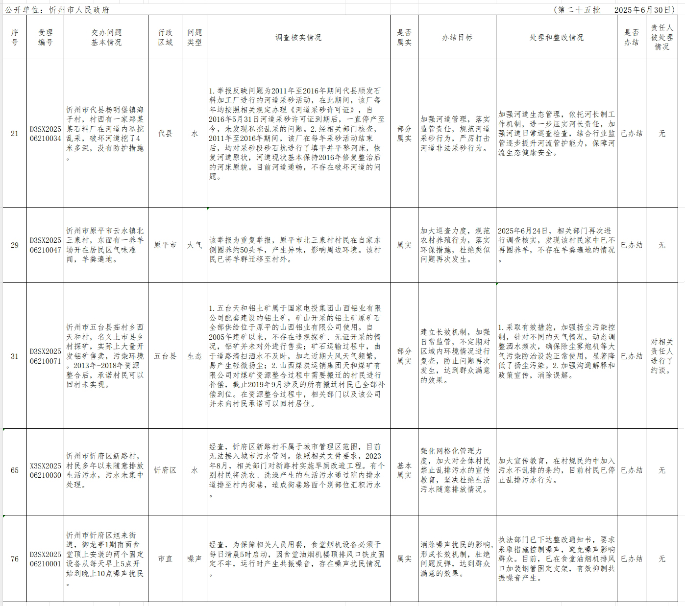 中央生態(tài)環(huán)境保護(hù)督察組群眾信訪舉報(bào)轉(zhuǎn)辦和邊督邊改公開情況一覽表(第二十五批).xlsx