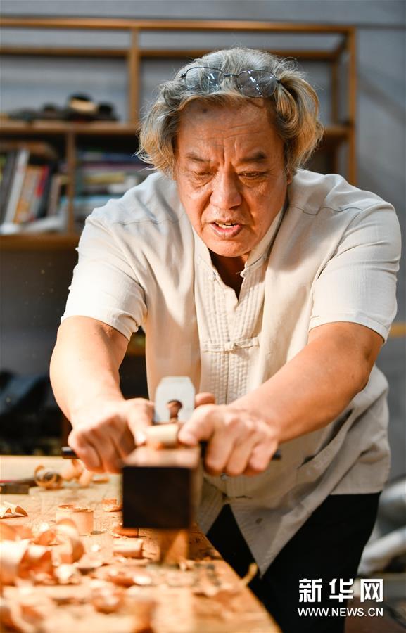8月25日,在天津職業(yè)大學(xué)辛全生大師木藝工作室,辛全生在用刨刀刮料。今年62歲的辛全生是天津市南開區(qū)傳統(tǒng)木工榫卯技藝的非遺代表性項目傳承人。2019年9月,天津職業(yè)大學(xué)為發(fā)展并傳承木工技藝,邀請辛全生作為老師給學(xué)生們授課,負(fù)責(zé)教授學(xué)生們榫卯結(jié)構(gòu)知識和木藝家具制作等實用技巧,并于2019年底在校內(nèi)建立辛全生大師木藝工作室。 辛全生出生于匠人家庭,他聽從父親的建議從16歲開始學(xué)習(xí)木工。40余年的木工生涯,辛全生經(jīng)歷過木工行業(yè)曾經(jīng)的紅火和后來的逐漸衰落,也曾在最艱難的時候做過別的營生。但無論如何,辛全生始終忘不了自己的木工身份?!袄献孀诹粝聛淼臇|西不能丟了,要傳承下去,否則將來的后代誰都不知道木工榫卯技術(shù)的存在了。”辛全生說。 近年來,有近百名不同職業(yè)、不同年齡的人慕名前來拜辛全生為師,學(xué)習(xí)傳統(tǒng)木工榫卯技藝。辛全生說,我會讓徒弟們學(xué)好木工榫卯技藝,讓中國的傳統(tǒng)手藝發(fā)揚光大。新華社發(fā)(孫凡越 攝)