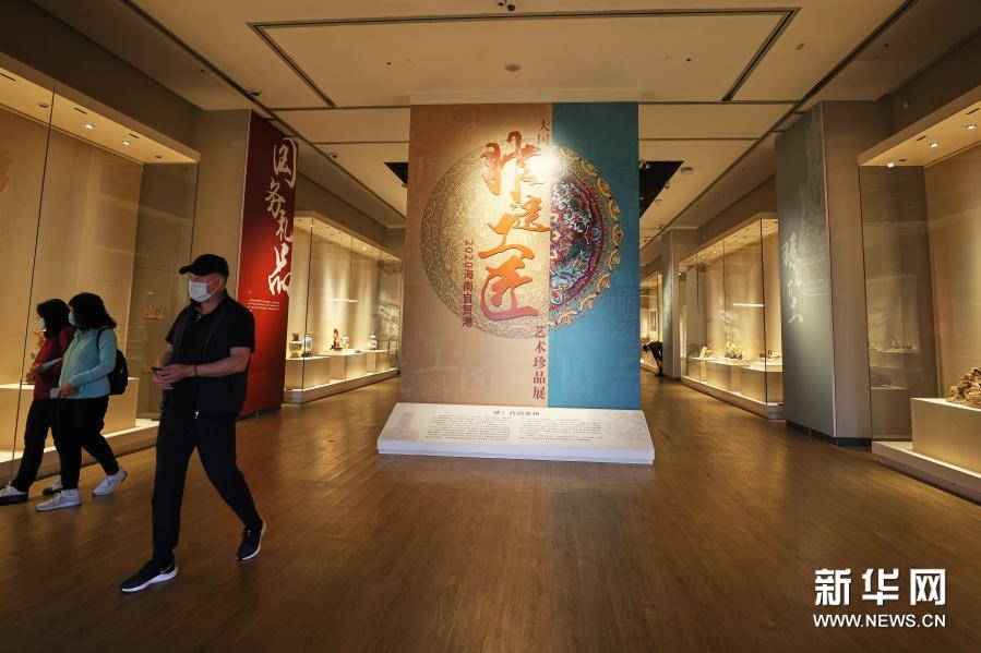 12月30日,人們?cè)诤D鲜〔┪镳^參觀(guān)2020海南自貿(mào)港大國(guó)非遺工匠藝術(shù)珍品展。近日,2020海南自貿(mào)港大國(guó)非遺工匠藝術(shù)珍品展在海南省博物館開(kāi)展,展覽分為大國(guó)非遺工匠藝術(shù)珍品展和技藝傳承展兩大展區(qū)。珍品展展出北京景泰藍(lán)、雕漆、景德鎮(zhèn)陶瓷、海南工藝美術(shù)代表作品等具有代表性的非物質(zhì)文化遺產(chǎn)作品,在技藝傳承展區(qū),非遺手工藝人現(xiàn)場(chǎng)展演展示黎錦、苗繡、雙面繡、木雕等技法。(新華社記者 張麗蕓 攝)