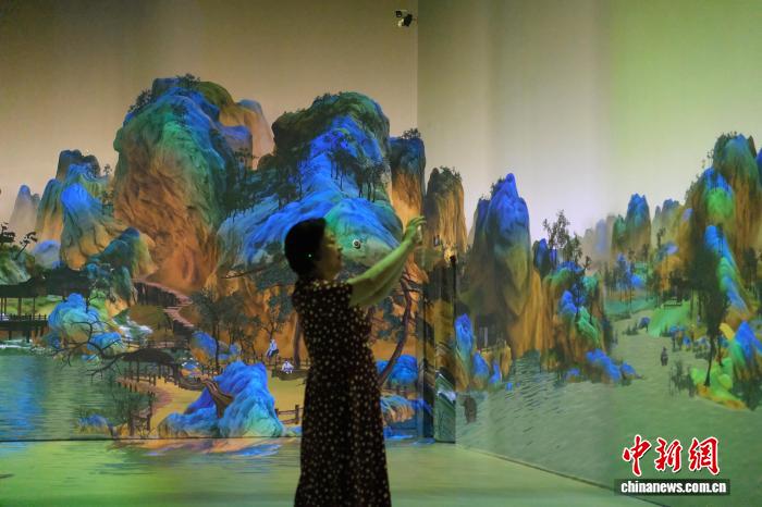7月16日,游客在“大系”典藏館內(nèi)體驗(yàn)“光影丹青”項(xiàng)目。曹丹 攝
