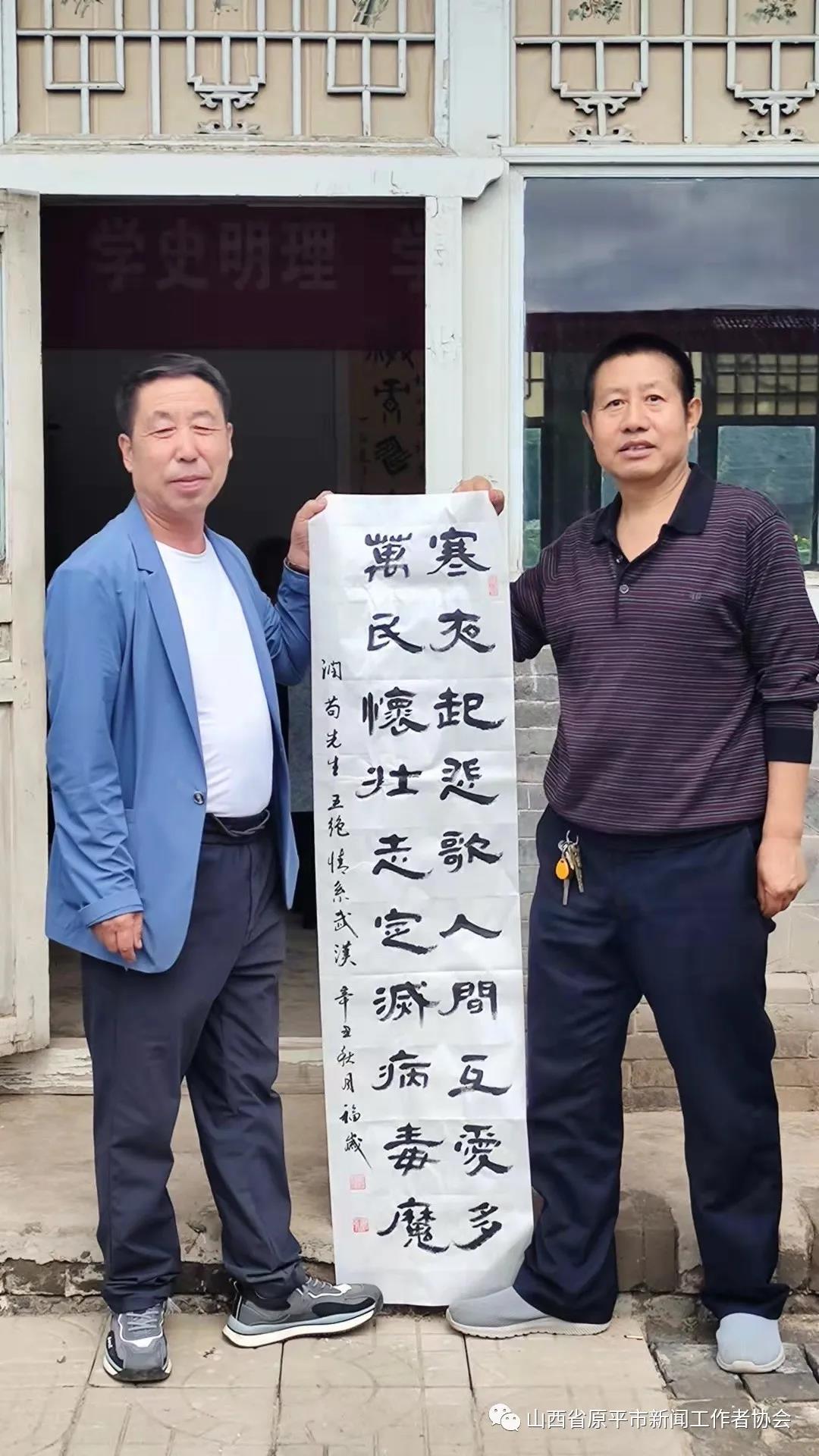 活動現(xiàn)場,大家暢所欲言,紛紛聯(lián)系思想實(shí)際,交流了學(xué)習(xí)黨史、明理知進(jìn)的心得體會,圍繞學(xué)史長知、學(xué)史明理、學(xué)史增信、學(xué)史興業(yè)進(jìn)行了熱烈討論。接著,書畫藝術(shù)組的書法家亢銀中、趙存仁、王玉伍、張正山、王福歲、王弘新,及學(xué)會顧問書畫名家溫樹森老師、以及特邀書畫名家李晉復(fù)先生,紛紛揮毫潑墨,書寫出學(xué)習(xí)黨史的感悟與名言。大筆揮灑中,一幅幅寫有“賡續(xù)精神血脈、傳承紅色基因”“明理增信.崇德力行”“不忘初心、牢記使命”和“江山就是人民、人民就是江山”等字樣的真、草、隸、篆、行書藝作品,從筆下飄然而出。墨香中呈現(xiàn)出各有千秋、韻味感人的風(fēng)格,博得觀賞者們的點(diǎn)贊稱道,并爭相拿到一幅贈品。書法家們顧不上喝水,整整忙了一個上午。特別是書畫藝術(shù)組組長李文光,由于平時在廣州忙于接送孩子上學(xué),放暑假回原平后特地趕來,高興地跟大家一起切磋書藝、展示才藝。書法家們還探討了書法藝術(shù)融入社會、融入黨性、服務(wù)大眾、服務(wù)中心的蹊徑、舉措與打算。(賈宣生 王福歲)