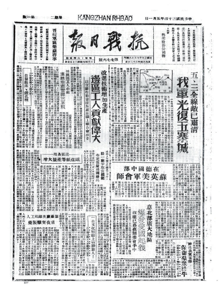 抗戰(zhàn)時(shí)期,忻州既是晉察冀、晉綏兩大根據(jù)地的中心腹地,也是抗戰(zhàn)初期全面抗敵的主戰(zhàn)場(chǎng)。忻州以其地理咽喉、戰(zhàn)役要沖、根據(jù)地核心和人民戰(zhàn)爭(zhēng)典范的多重角色,成為抗日戰(zhàn)爭(zhēng)中抵御日軍侵略、堅(jiān)持?jǐn)澈蠖窢?zhēng)的戰(zhàn)略支點(diǎn)之一。其歷史貢獻(xiàn)不僅體現(xiàn)在軍事上,更彰顯了中華民族不屈不撓的抗戰(zhàn)精神。隨著八路軍平型關(guān)大捷、雁門關(guān)伏擊戰(zhàn)、夜襲陽(yáng)明堡飛機(jī)場(chǎng)等戰(zhàn)役勝利,1937年11月7日晉察冀軍區(qū)在五臺(tái)成立。12月11日,《抗敵報(bào)》誕生。1940年11月,《抗敵報(bào)》改名為《晉察冀日?qǐng)?bào)》,鄧拓任報(bào)社主任。《抗敵報(bào)》最初在五臺(tái)石嘴村石印,后改鉛印。1938年1月,晉察冀邊區(qū)行政委員會(huì)在河北阜平成立,兩月后,邊區(qū)行政委員會(huì)遷駐五臺(tái)射虎川臺(tái)麓寺,報(bào)社、印刷廠分駐海慧庵、蛤蟆石古佛寺。1940年9月18日,晉綏分局機(jī)關(guān)報(bào)《抗戰(zhàn)日?qǐng)?bào)》,伴隨著隆隆炮火聲,在距離忻州不遠(yuǎn)的興縣艱難創(chuàng)刊。自此,那些戰(zhàn)地記者、通訊員甚或普通民眾,有名的,無(wú)名的,以個(gè)人名義,以集體名義,在極其艱苦的條件下,用滾燙筆尖秉筆直書(shū),為我們珍存了那些發(fā)生在忻州大地上前仆后繼、可歌可泣的抗戰(zhàn)故事,也讓今天的人們一旦捧讀就會(huì)熱血沸騰。