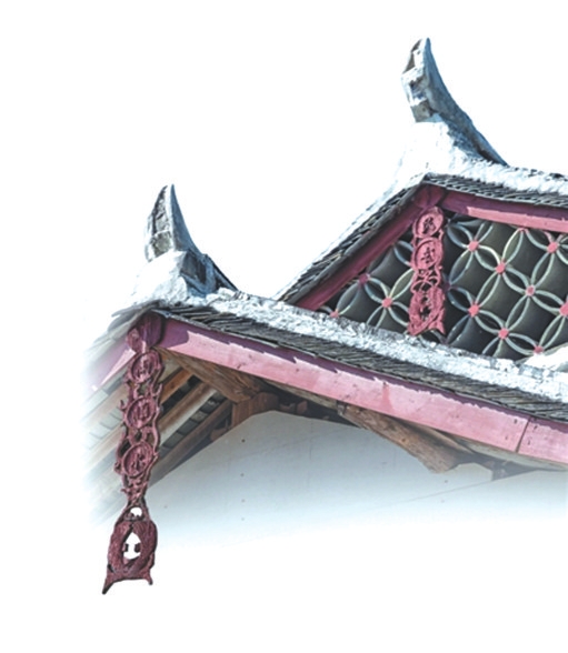 懸魚寓意豐富,蘊含著古人對平安、幸福的向往。懸魚有祈求建筑免遭火災(zāi)的寓意,木結(jié)構(gòu)古建筑怕火,而魚為水中之物,懸魚有水能克火之意。不僅是懸魚,過去古建筑的屋頂上,常裝飾與水有關(guān)的意象,如龍、鴟吻、鰲魚、水草等。懸魚也有祈求吉祥、富貴有余等寓意。魚與“余”“?!敝C音,象征富余、富裕、吉慶有余。魚多子,也體現(xiàn)了人們祈求多子多孫的愿望。有的懸魚下端雕兩條尾部相交的游魚,寓意雙魚喜慶。懸魚除了使用魚的形象,也會采用其他紋樣,如蝙蝠紋樣,取“?!敝?;桃花、荷花、梅花、牡丹等紋樣,寓意吉祥、和美、富貴;花瓶紋樣,象征平安等。后來,懸魚不斷演化,有了卷云如意、飛禽等圖案,造型的式樣也日趨豐富。