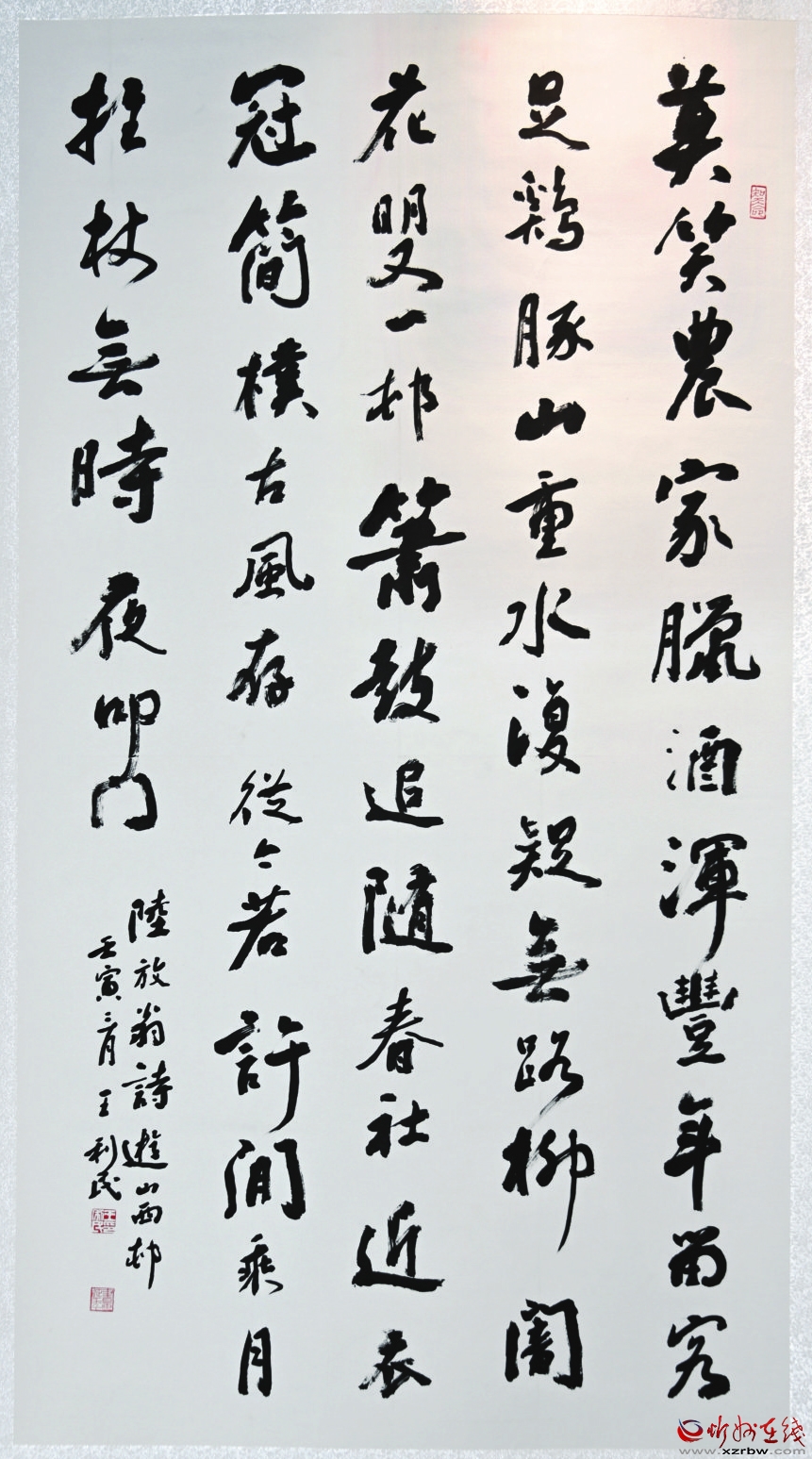 據(jù)悉,今年5月,忻州市文聯(lián)面向全市書畫界征集主題書畫作品,同時向書畫名家進行約稿,征集書法作品271件,美術(shù)作品30件。經(jīng)過公正嚴格組織評選,最后入選展覽作品80余件。作品藝術(shù)形式多樣,諸體兼?zhèn)?,?gòu)思新穎,具有較高的思想性與藝術(shù)性,從書法繪畫的視野,展現(xiàn)出太忻一體化經(jīng)濟區(qū)建設(shè)的進程,充盈著高雅的藝術(shù)格調(diào)和鮮活的時代氣息。