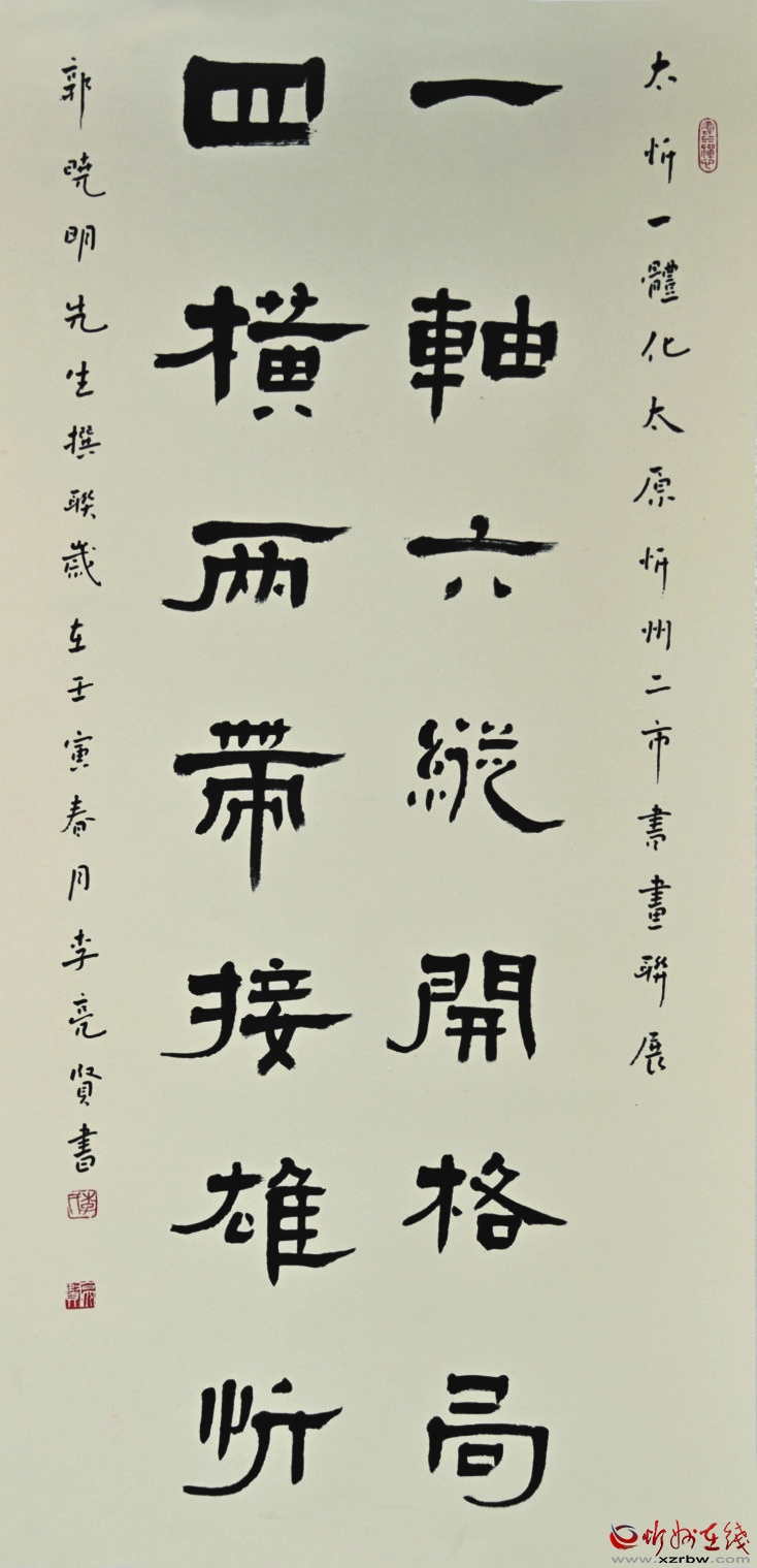 丹青吐彩,翰墨飄香。5月25目,由太原市委宣傳部、忻州市委宣傳部、山西省圖書館、太原市文聯(lián)、忻州市文聯(lián)共同主辦,太原市書法家協(xié)會、忻州市書法家協(xié)會承辦,助力“太忻經(jīng)濟一體化”發(fā)展——太原·忻州城市書法聯(lián)展在山西省圖書館拉開帷幕。