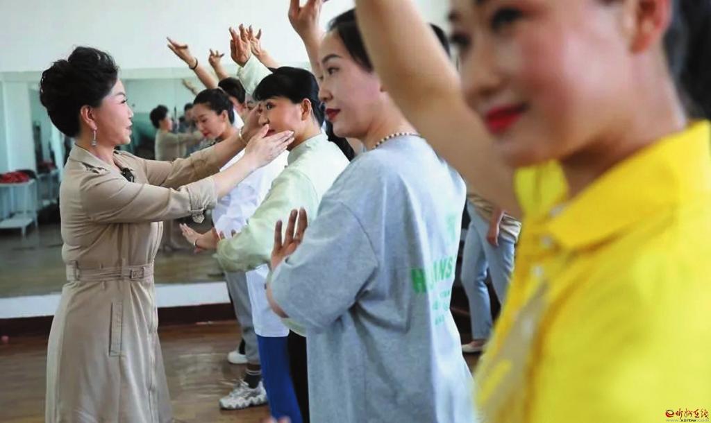 郝云婧在指導(dǎo)學(xué)員形體動(dòng)作 “哥哥你走西口,小妹妹我實(shí)在難留,手拉著哥哥的手,送哥送到大門口……”這一曲曾讓老一輩人魂?duì)繅?mèng)縈的《走西口》正是傳統(tǒng)民歌二人臺(tái)的代表曲目之一。 作為清朝末年出現(xiàn)的地方小戲,二人臺(tái)初名叫“打玩藝兒”,是陜、甘、晉、冀北部和內(nèi)蒙古中西部地區(qū)流行的地地道道的草根藝術(shù)。其唱、念、做、打樣樣俱全的表演元素使之逐漸發(fā)展成為我國(guó)北方地區(qū)名副其實(shí)的一個(gè)“戲曲品種”,2006年被列入第一批國(guó)家級(jí)非物質(zhì)文化遺產(chǎn)名錄。 二人臺(tái),顧名思義二人同臺(tái)演唱,一男一女,一俊一丑,角色載歌載舞,道具多有鞭扇帕絹。二人臺(tái)的藝術(shù)特點(diǎn)主要是幽默風(fēng)趣、貼近生活,曲調(diào)委婉流暢、朗朗上口。 作為忻州市二人臺(tái)劇團(tuán)團(tuán)長(zhǎng),同時(shí)也是二人臺(tái)非遺項(xiàng)目的省級(jí)傳承人,郝云婧在傳承中讓這一戲曲藝術(shù)綻放旺盛的藝術(shù)生命力。談起二人臺(tái),郝云婧總會(huì)滔滔不絕,眼中閃爍著摯愛的光芒。 在從業(yè)30多年里,郝云婧以韻味濃郁、風(fēng)格獨(dú)特美妙的唱腔詮釋著民歌二人臺(tái)。而今,作為忻州市二人臺(tái)劇團(tuán)團(tuán)長(zhǎng)的她,已成為忻州民歌二人臺(tái)劇種的主要領(lǐng)軍人。 在她看來(lái),將既能“下里巴人”,也能“陽(yáng)春白雪”的二人臺(tái)傳承下去,是她畢生的責(zé)任?!澳壳拔业耐降芤呀?jīng)有二十多個(gè),培養(yǎng)并指導(dǎo)了二人臺(tái)的藝術(shù)愛好者300多人,他們都是各個(gè)單位的文藝骨干,其中國(guó)家二級(jí)演員5人,市級(jí)二人臺(tái)非遺傳承人有7名,獲國(guó)家級(jí)、省級(jí)、市級(jí)獎(jiǎng)項(xiàng)的也有十多個(gè)人?!焙略奇赫f(shuō)。 傳承不泥古,創(chuàng)新不離宗。民歌二人臺(tái)要傳承創(chuàng)新,還要吐故納新,勇于開拓,不斷改革創(chuàng)新,運(yùn)用現(xiàn)代手段,編排出百姓喜聞樂見的節(jié)目,與新型藝術(shù)形式接軌。2021年,忻州市二人臺(tái)劇團(tuán)拍攝了二人臺(tái)實(shí)景劇《相逢蘆芽山》。據(jù)悉,他們準(zhǔn)備整合各種資源,創(chuàng)作更多的二人臺(tái)和民歌的優(yōu)秀作品,通過(guò)這些文藝作品,讓更多人認(rèn)識(shí)、了解忻州。 “近期,我們也會(huì)陸續(xù)把一些原創(chuàng)作品,通過(guò)短視頻平臺(tái)傳播和推廣出去,讓更多的年輕人了解我們,喜歡我們。”郝云婧說(shuō)。 談到未來(lái),民歌二人臺(tái)的藝術(shù)工作者們充滿信心。從文化惠民到周末大戲臺(tái),再到非遺進(jìn)校園、進(jìn)景區(qū)、進(jìn)社區(qū),如今,在忻州市委市政府的支持下,民歌二人臺(tái)的發(fā)展之路,越走越廣。 華燈初上,委婉動(dòng)人的二人臺(tái)唱腔從忻州古城古戲臺(tái)上傳來(lái),向游客娓娓講述忻州歷史文化、名人民俗、歷史故事……隨著時(shí)間的推移,民歌二人臺(tái)在這片廣袤的土地上,將依托老一輩藝術(shù)工作者的堅(jiān)守與新一輩藝術(shù)愛好者的創(chuàng)新,再度煥發(fā)青春,揮灑時(shí)代風(fēng)流。 (責(zé)任編輯:盧相汀) |