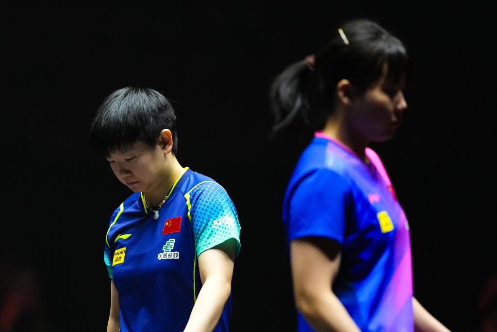 11月21日,孫穎莎(左)和陳幸同在比賽中。新華社記者 張笑宇 攝