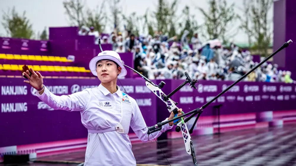 新華社南京10月19日電(記者王恒志)2025現(xiàn)代汽車·射箭世界杯總決賽19日在江蘇南京落幕,中國隊兩位女選手李佳蔓、朱靜怡和男子選手考文超均止步反曲弓首輪比賽,美國老將埃利森和韓國名將安山分別奪得男、女反曲弓金牌。 射箭世界杯總決賽設(shè)男、女反曲弓和男、女復(fù)合弓四個組別,共有來自中國、韓國、美國、巴西、德國等14個國家和地區(qū)的32名頂尖高手參賽。