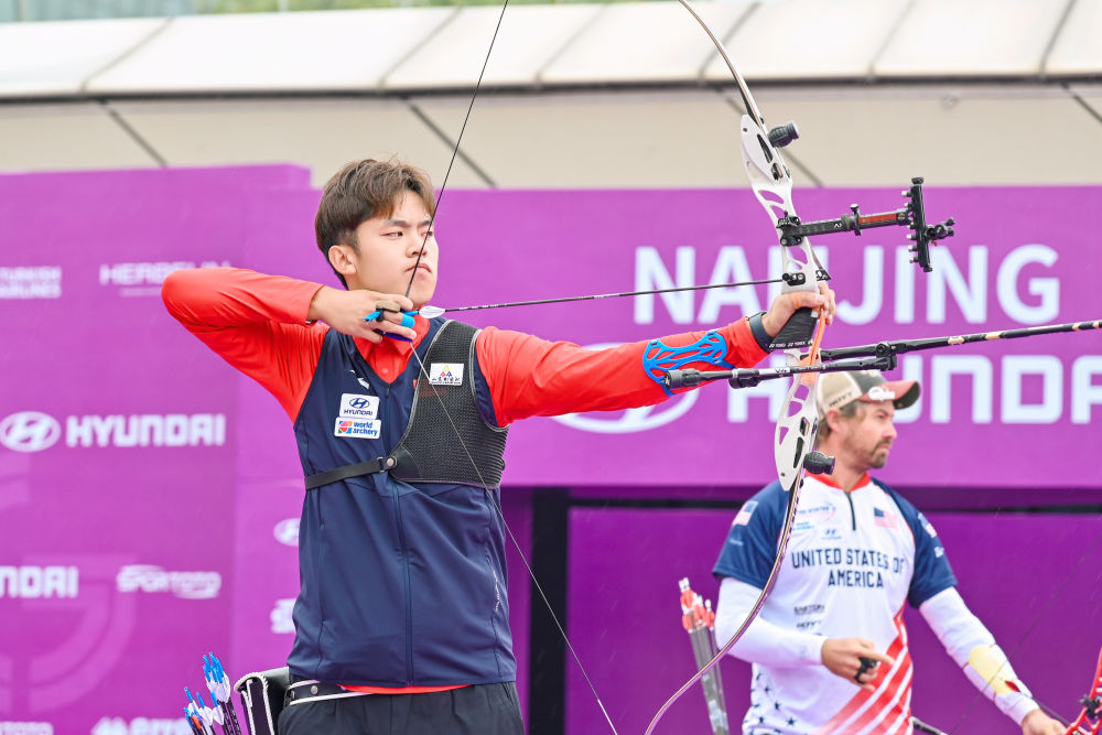 韓國選手安山在比賽中 李佳蔓在首輪加賽惜敗,加賽輪兩人都射中8環(huán),但許芯慈的箭離靶心更近,從而險勝過關(guān)。28歲的李佳蔓賽后坦言,今年比賽任務(wù)有些繁重,對自己這個年齡的運動員來說,還是需要一定調(diào)整時間。 男子反曲弓比賽中,中國隊的考文超在首輪與世界排名第二的美國老將埃利森也鏖戰(zhàn)至加賽,埃利森發(fā)揮更為穩(wěn)定,射出10環(huán),考文超射出9環(huán),無緣晉級。隨后埃利森一路過關(guān)斬將,最終斬獲冠軍。世界排名第一的巴西選手阿爾梅達(dá)獲得亞軍,法國選手奇羅摘得銅牌。值得一提的是,當(dāng)日只有考文超將埃利森逼入了加賽環(huán)節(jié)。