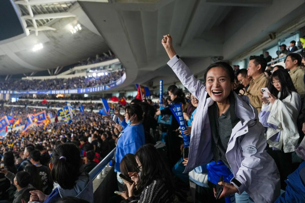11月1日,一名球迷在看臺為雙方球隊加油。新華社記者 李博 攝
