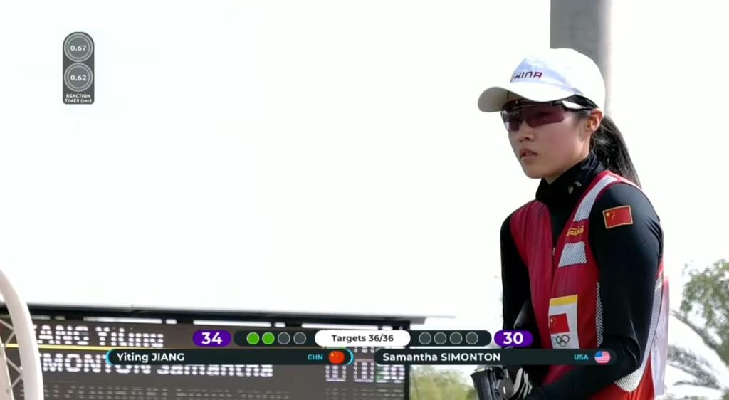 決賽中,21歲的江伊婷延續(xù)火熱手感,前32靶全部命中,以領(lǐng)先美國選手薩曼莎·西蒙頓2中的優(yōu)勢晉級最后的決勝輪。隨后,率先出場的江伊婷4靶全中,以滿中成績提前奪冠。西蒙頓最終以34中獲得亞軍,希臘選手埃瑪努埃拉·卡楚拉基獲季軍。另一位晉級決賽的中國選手車雨霏以24中排名第四。