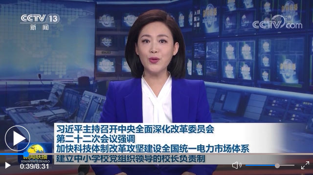 加快科技體制改革攻堅(jiān)建設(shè)全國統(tǒng)一電力市場體系 建立中小學(xué)校黨組織領(lǐng)導(dǎo)的校長負(fù)責(zé)制