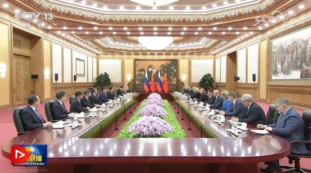 11月4日上午,國(guó)家主席習(xí)近平在北京人民大會(huì)堂會(huì)見俄羅斯總理米舒斯京。