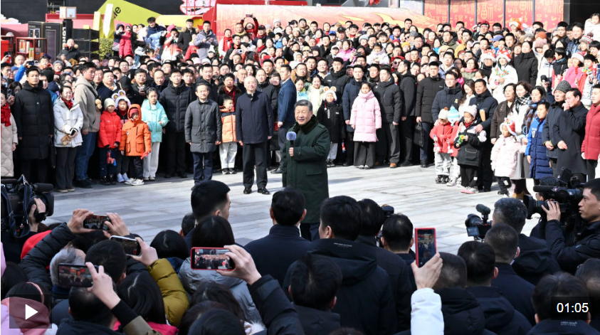 中華民族傳統(tǒng)節(jié)日春節(jié)即將到來之際,中共中央總書記、國家主席、中央軍委主席習(xí)近平在北京考察并看望慰問基層干部群眾,向全國各族人民和香港同胞、澳門同胞、臺(tái)灣同胞、海外僑胞拜年!