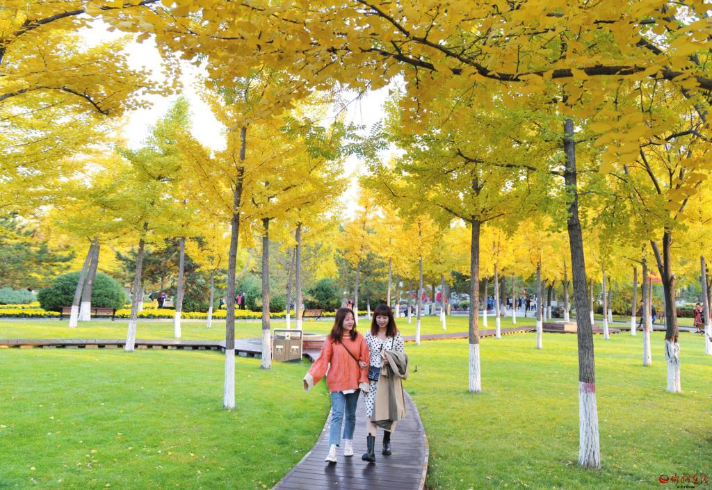 深秋時(shí)節(jié),忻州城區(qū)隨處可見花成帶、綠成片、樹成景的優(yōu)美風(fēng)景線。近年來,我市不斷推進(jìn)城市綠化,提升綠化檔次,極大改善了人居環(huán)境。圖為游客徜徉在人民公園銀杏林內(nèi)。 (張存良 攝)