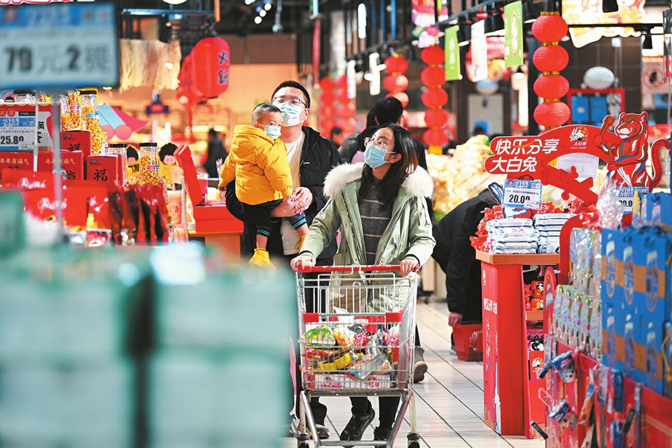 1月15日,市民在節(jié)日氣氛濃郁的賣場內(nèi)選購年貨。新春佳節(jié)臨近,為確保太原百姓尤其是就地過年人員的節(jié)日消費(fèi)需求不“縮水”,我省美特好等各大商超積極采取各種措施,確保春節(jié)期間物豐價(jià)穩(wěn)。(本報(bào)記者李兆民 本報(bào)通訊員陳靖宜攝)