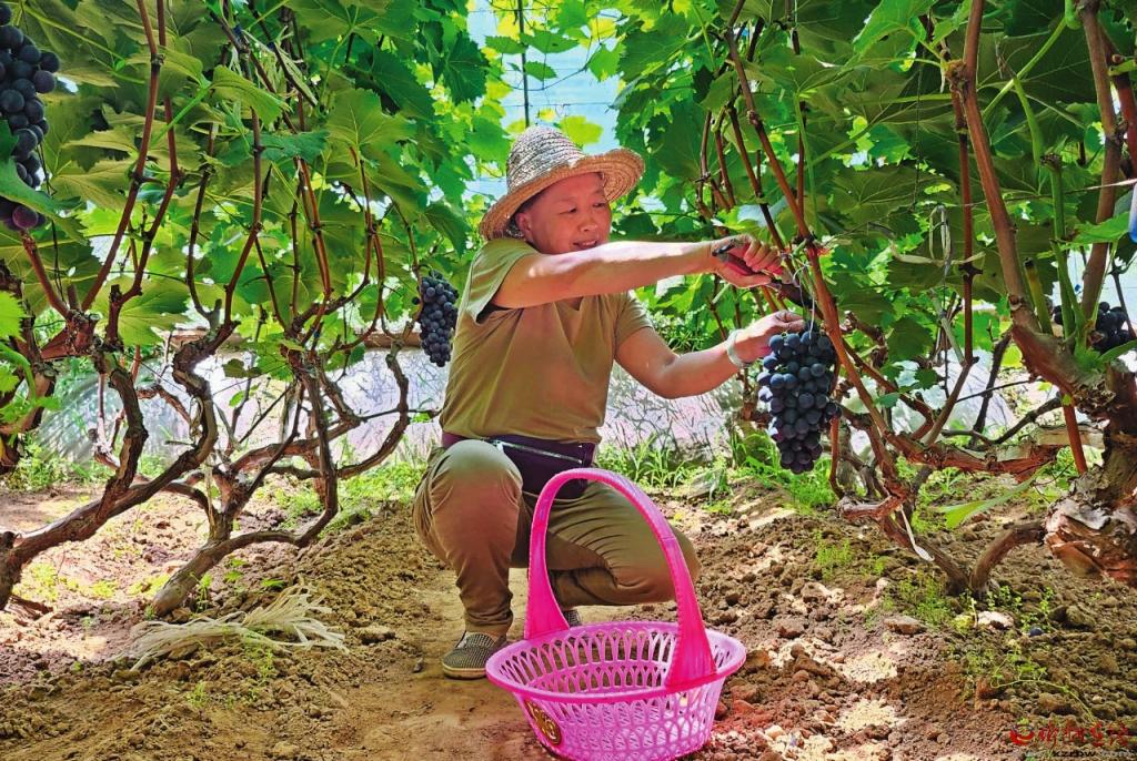 彭麗萍開心地說:“種葡萄8年多了,我們夫妻倆通過不斷看書學(xué)習(xí),在網(wǎng)上取經(jīng),再結(jié)合本地大棚葡萄種植的實際情況,不斷提高管護(hù)技術(shù),拓寬銷售渠道,收入越來越高,生活越來越好?!保ǚ段钠G)