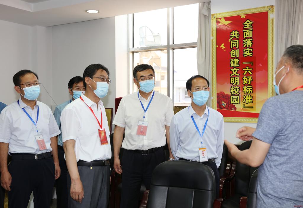 在忻州市高考指揮中心,李青山一行通過視頻指揮調(diào)度平臺實時察看各縣(市、區(qū))各考點考場試卷啟封、分發(fā)、開考情況,察看各考點周邊環(huán)境秩序,到保密室視頻察看各地試卷安全保密措施。隨后深入忻州十中和十一中考點,仔細(xì)察看考生進(jìn)入考點時的測溫通道和安檢通道,實地走訪醫(yī)務(wù)室、考務(wù)室、保密室,通過視頻監(jiān)控察看各考場情況。李青山指出,高考是實現(xiàn)教育公平、社會公平的重要制度,承載著為國選人育人的重大使命。各級各相關(guān)部門要充分認(rèn)識做好疫情常態(tài)化防控形勢下高考工作的特殊性、重要性、復(fù)雜性,周密部署,扎實抓好高考期間各項工作,全力保障高考順利進(jìn)行。要按照職責(zé)分工和任務(wù)安排,抓好試題保密、考場引導(dǎo)、考風(fēng)考紀(jì)等關(guān)鍵環(huán)節(jié),切實把高考工作組織好、落實好,要加強考點周圍環(huán)境整治等高考各項服務(wù)保障,為考生營造安靜、有序、寬松的考試環(huán)境。各相關(guān)部門要按照高考有關(guān)規(guī)定,密切配合、通力合作,確保各項工作做到細(xì)而又細(xì)、實而又實,把高考服務(wù)工作做得更細(xì)更扎實,為廣大考生穩(wěn)定發(fā)揮提供良好考試環(huán)境。