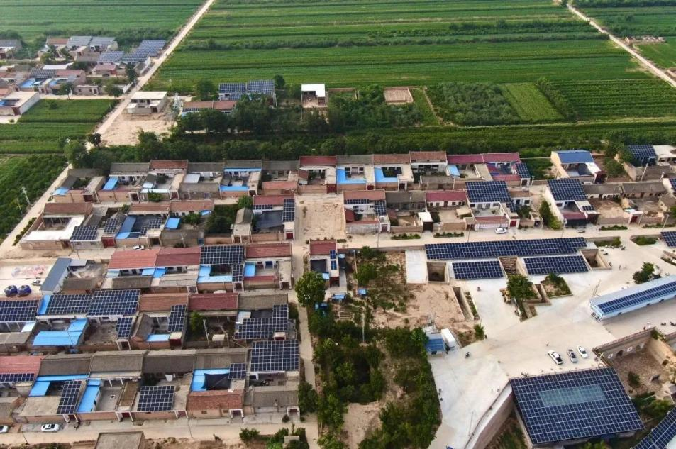 家家農戶屋頂上藍色光伏板閃閃發(fā)光