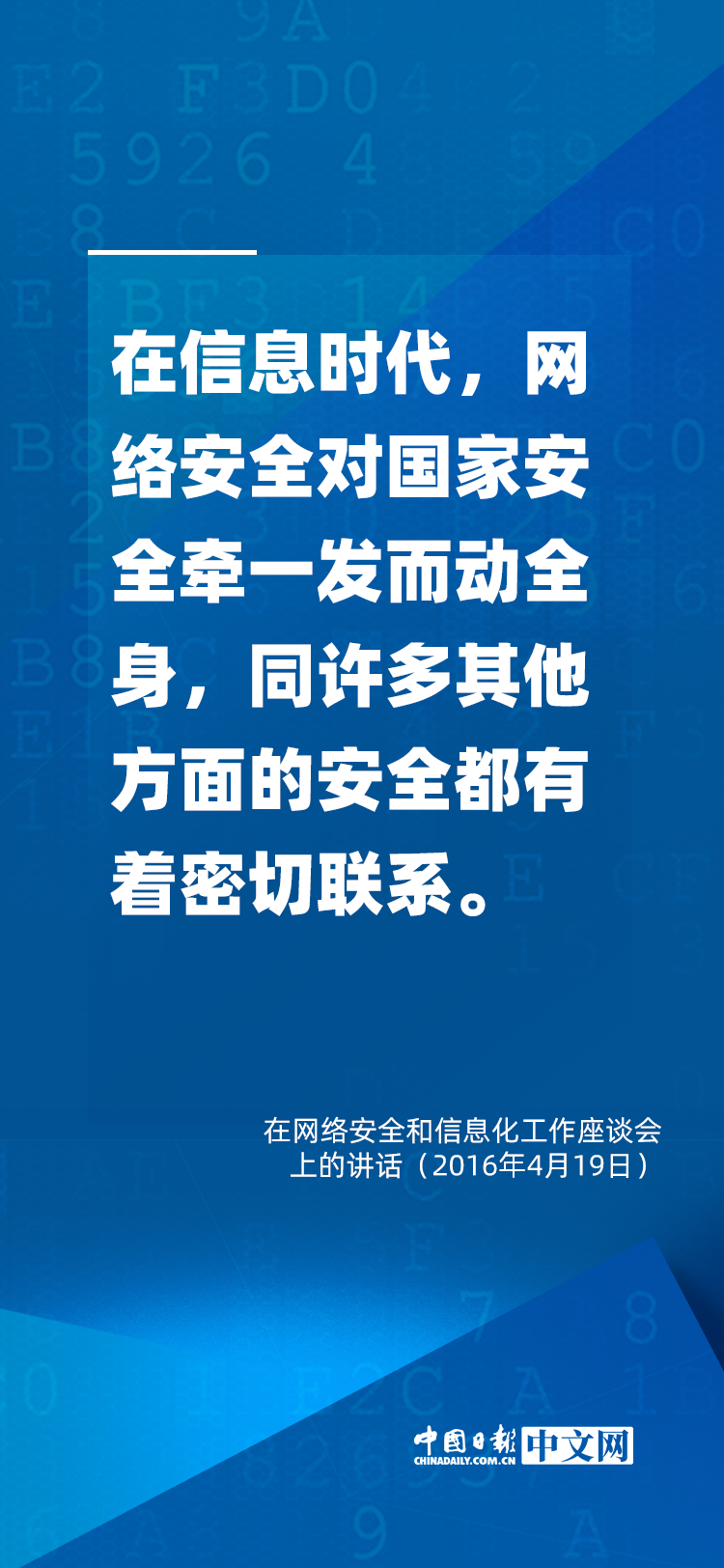 沒(méi)有網(wǎng)絡(luò)安全就沒(méi)有國(guó)家安全。習(xí)近平總書(shū)記始終高度重視網(wǎng)絡(luò)安全工作,作出了一系列重大論述,為推動(dòng)網(wǎng)絡(luò)強(qiáng)國(guó)建設(shè)提供遵循、指明方向。