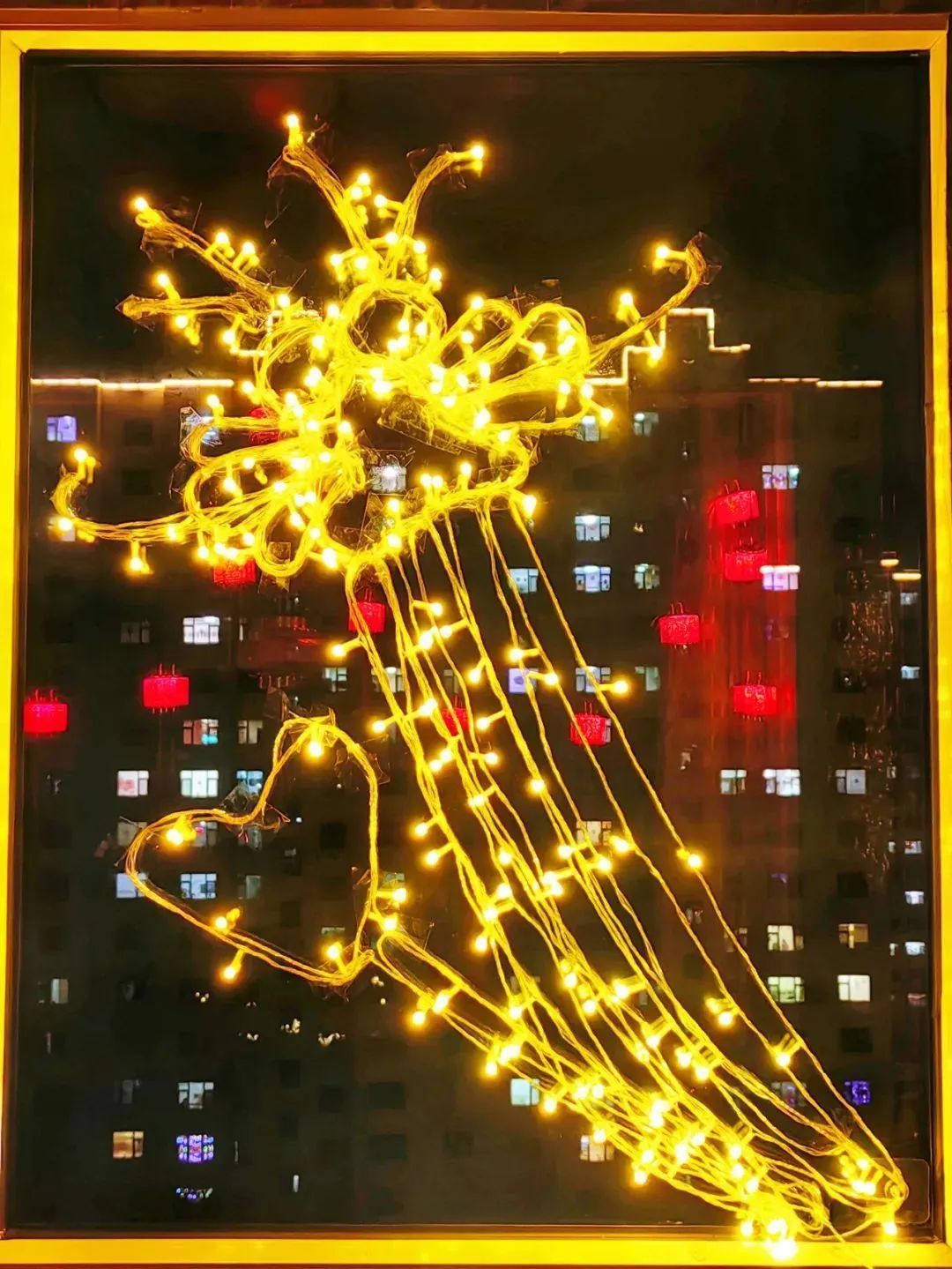 春節(jié)期間,大同市民將年年必掛的串燈也盤成龍形狀