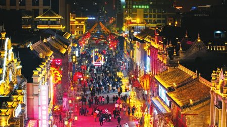 2月11日晚,太原市鐘樓街燈火通明、人頭攢動(dòng),一派喜氣洋洋的節(jié)日氣氛。春節(jié)到來(lái),省城街頭流光溢彩、彩燈高懸、夜景如畫(huà),散發(fā)著濃濃年味。人們攜親伴友紛紛走上街頭,感受濃郁的節(jié)日氛圍。