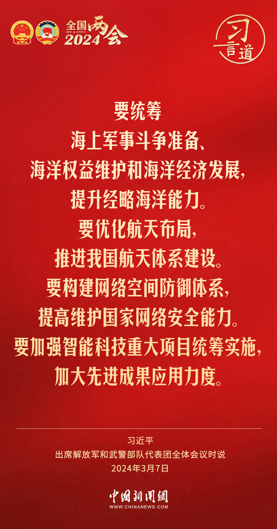 中共中央總書記、國家主席、中央軍委主席習(xí)近平7日下午出席十四屆全國人大二次會議解放軍和武警部隊(duì)代表團(tuán)全體會議,習(xí)近平強(qiáng)調(diào)——