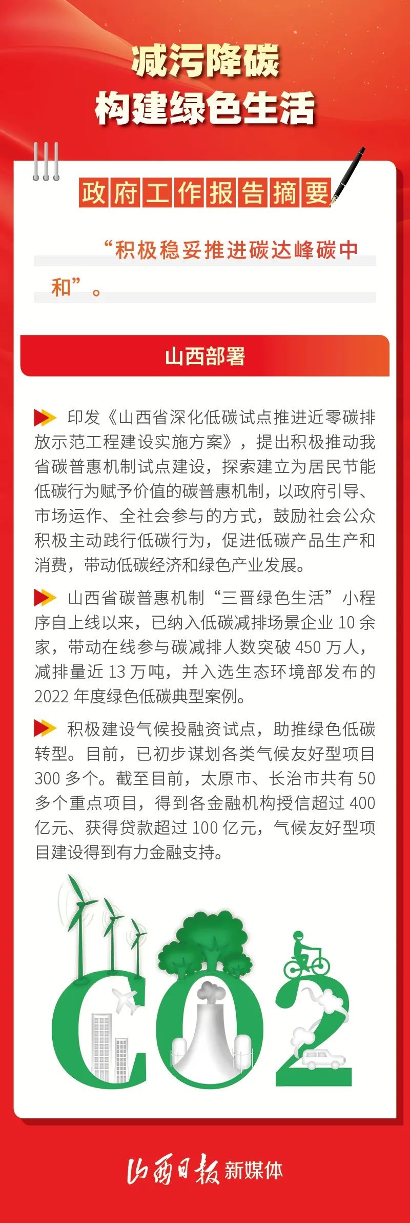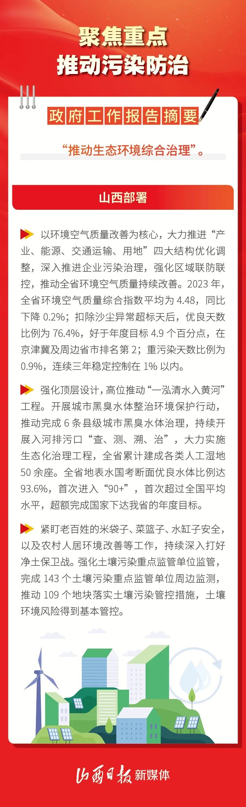 今年的政府工作報告指出,要加強(qiáng)生態(tài)文明建設(shè),推進(jìn)綠色低碳發(fā)展。山西堅(jiān)持減污降碳協(xié)同增效,全方位、全地域、全過程開展生態(tài)環(huán)境保護(hù),持續(xù)深入打好三大污染防治攻堅(jiān)戰(zhàn),不斷推動生態(tài)環(huán)境質(zhì)量再上臺階,為三晉大地帶來更多的藍(lán)天白云。